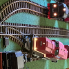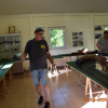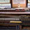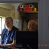 Die Modellbahngruppe präsentierte auch wieder ihre Bahnen. Im Steuerstand sind Uwe und Geert aus Fahrdienstleiter tätig; Unter der Anlage durfte Michael einen Unfall beseitigen.