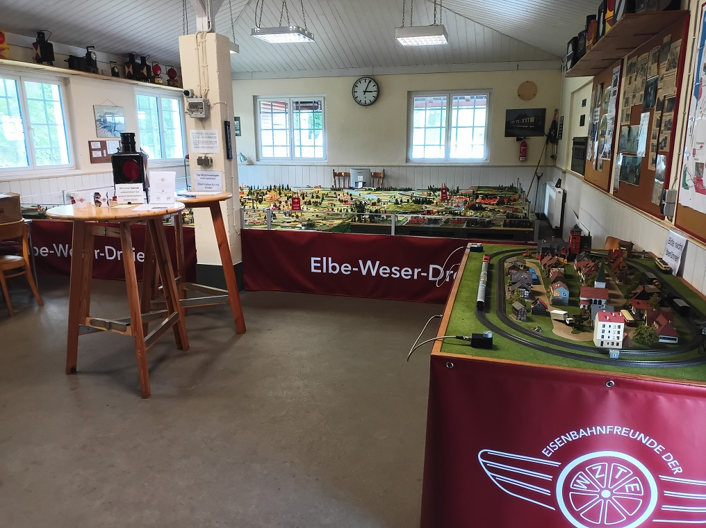 Die alte Bahnmeisterei von der WZTE ist unser Vereinsheim geworden. Neben der Spur-N (Elbe-Weser-Dreieck) und Spiel-Anlage, bietet sie auch viel Platz für unsere Gäste und Ausstellungsstücke. An den Wänden findet man viele Bilder und Berichte von der WZTE, unserem Vereinsleben und Veranstaltungen, von den letzten Jahren. Es gibt eine Ausstellung verschiedener Bahn-Laternen und einige alte Sachen aus dem Bahnwesen, von früher.