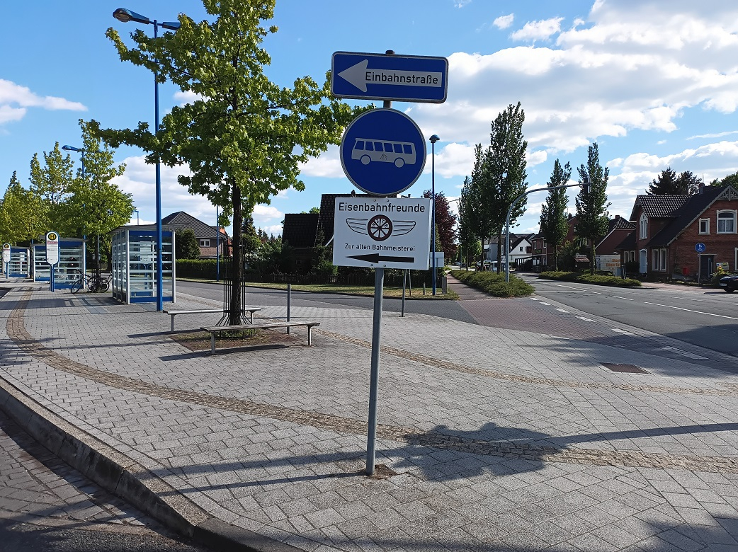 Um zu der Bahnmeisterei zu gelangen, darf das Schild "Verbot der Einfahrt" überfahren werden. Desweiteren sind ausreichend Parkplätze vorhanden.