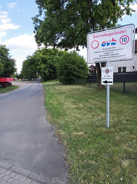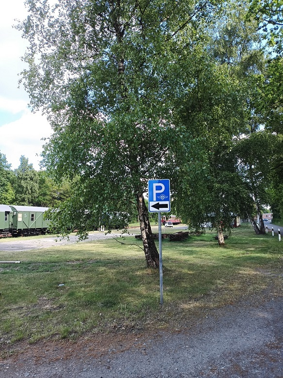 Um zu der Bahnmeisterei zu gelangen, darf das Schild "Verbot der Einfahrt" überfahren werden. Desweiteren sind ausreichend Parkplätze vorhanden.