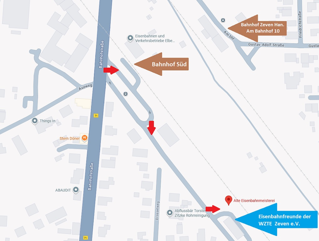 Da das Gebäude ein Nebengebäude auf dem EVB-Gelände ist, besitzt die Bahnmeisterei keine eigene Adresse.